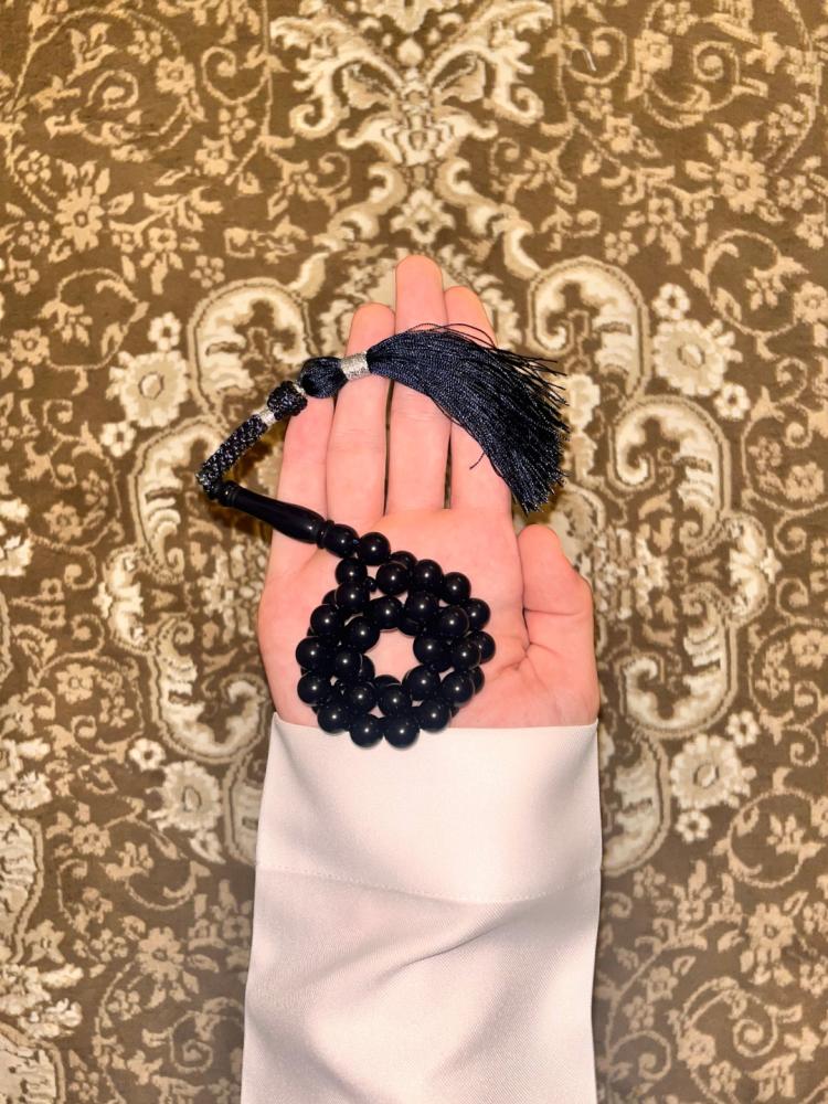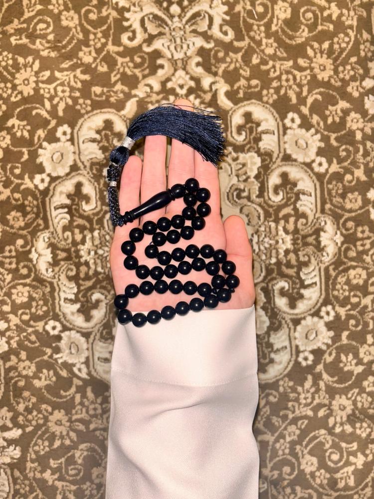 بكركوشة كحلي تتناسب مع لون السبحة لتكتمل السبحة